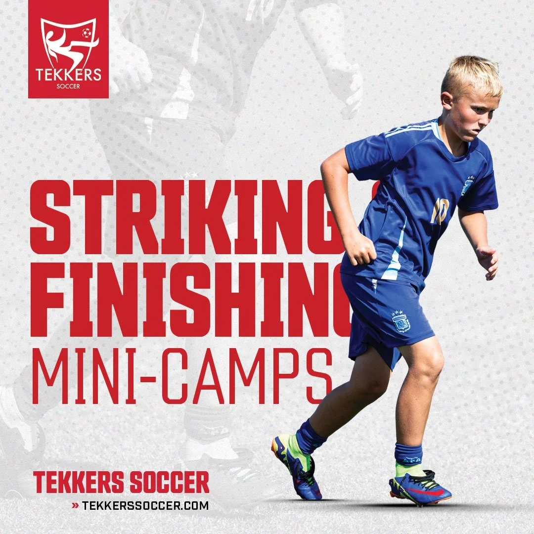 Tekkers Soccer Striking & Finishing minicamp focuses on all the little details that go into putting the ball in the back of the net on a consistent basis. The Striking & Finishing minicamp will help build and retain good habits when striking a ball.